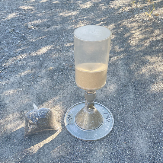 盛土体や道路の路盤・路床の密度を求める.現場密度を計測することにより規定の締固め度をチェックする(定められた頻度で実施する)