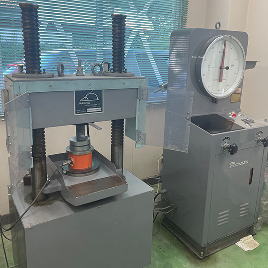 一定体積に最大量の土粒子を締固められる密度(最大乾燥密度)を求める試験.その時の含水比を最適含水比という