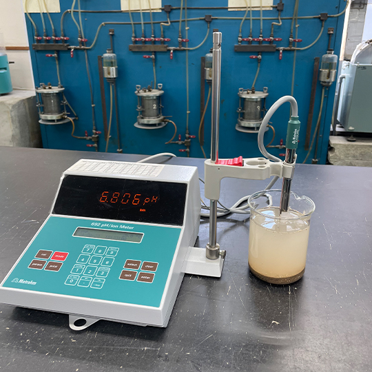 植物の育成や構造物の劣化等に関係する土のpH(酸性・中性・アルカリ性)を求める